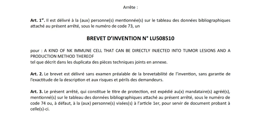 - NK免疫细胞肿瘤靶向治疗技术(专利号LU508510)